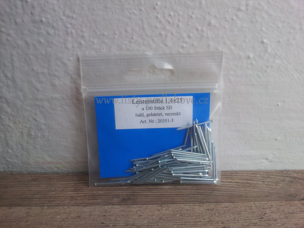 Hřebíky lištové 1,4 x 25 pozink 100 ks