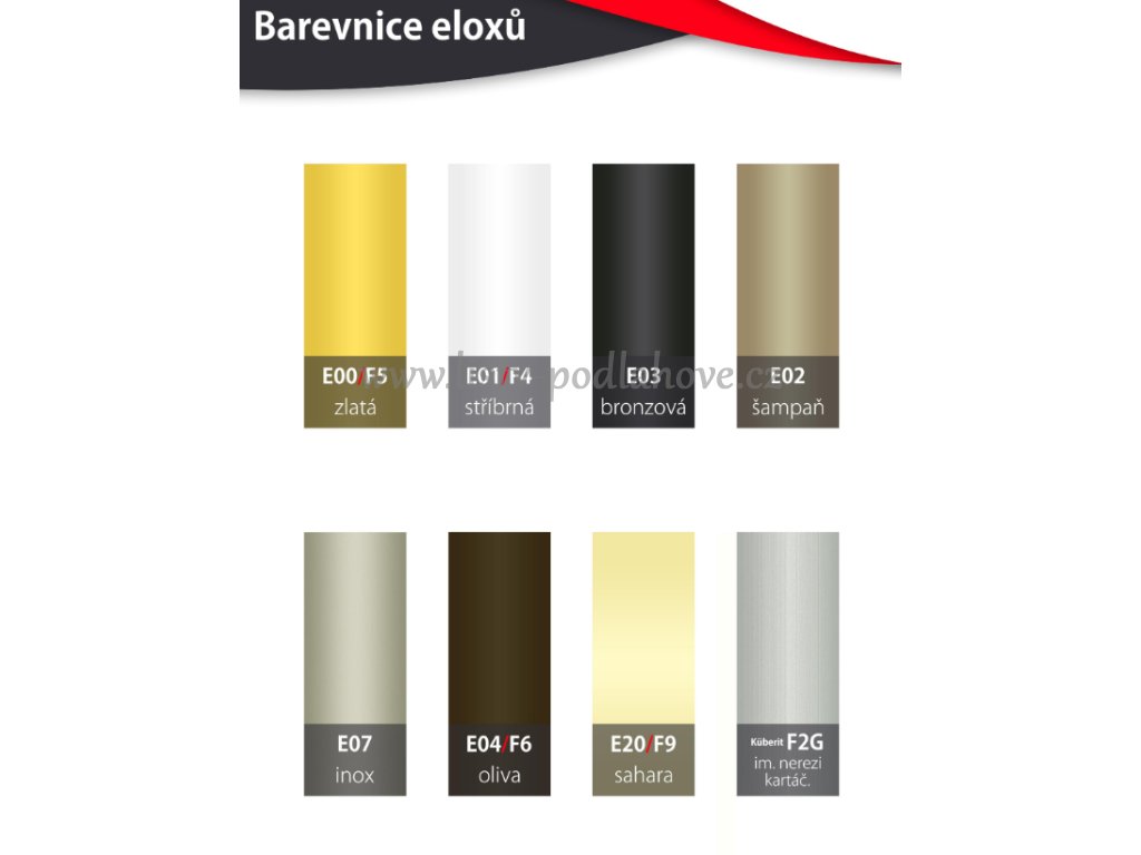 Tento typ lišty se nevyrábí v dekoru dřeva, ale pouze v eloxovaném provedení (stříbro, šampaň, inox, zlato, bronz).